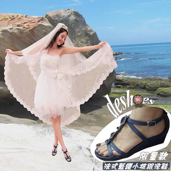 德億女鞋~2017年new arrival~台灣手工鞋~人魚貝殼夾腳小坡跟涼鞋(限量發售)(裡外全真皮)(新款上市)